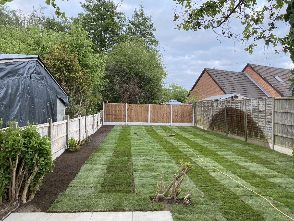 You worked hard all week and the garden, which started as a bit of a mess, is now levelled, turfed and the patio is fixed. It looks great 😊